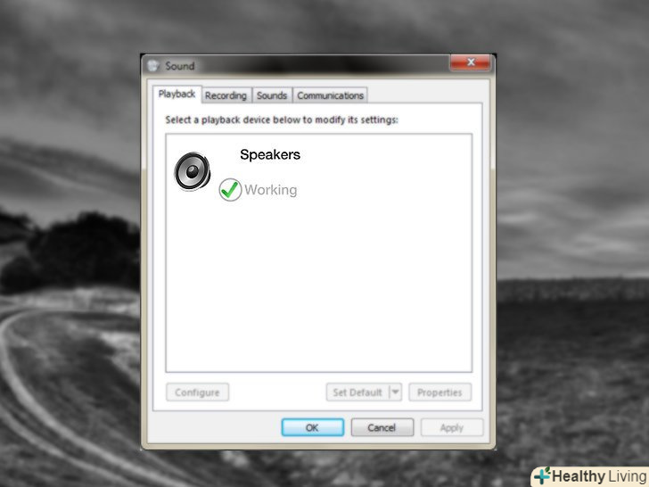 Перевірте з'єднання на вашому комп'ютері.- Натисніть «Пуск» - «Панель управління» - «Звук». Відкрийте вкладку "відтворення". Подивіться на активні динаміки. Якщо стереосистема відзначена зеленою галочкою, то все в порядку. Якщо стереосистема відзначена червоним значком, то вона не ідентифікується системою. В цьому випадку перевірте правильність підключення кабелів.