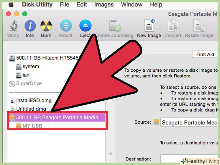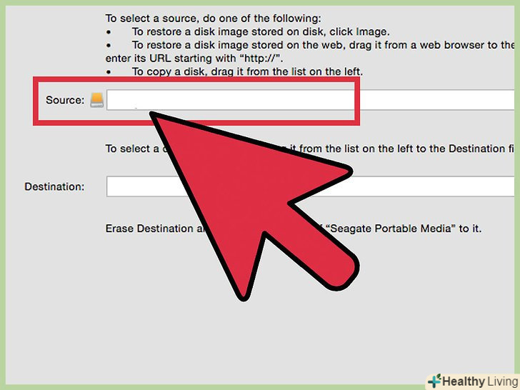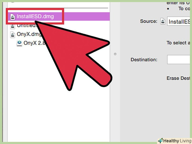 Перетягніть прихований файл " BaseSystem. Dmg "в поле" джерело " дискової утиліти.