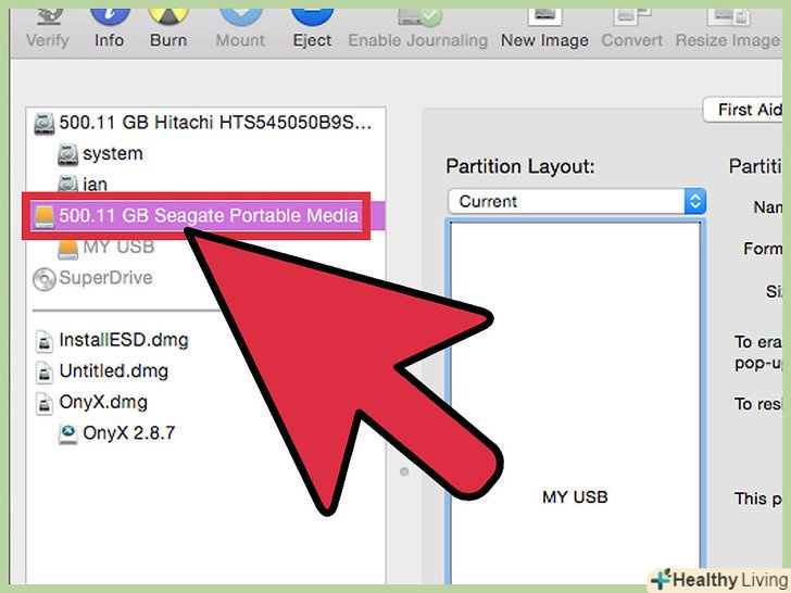Виберіть вашу USB флешку, коли вона з'явиться на лівій панелі дискової утиліти.