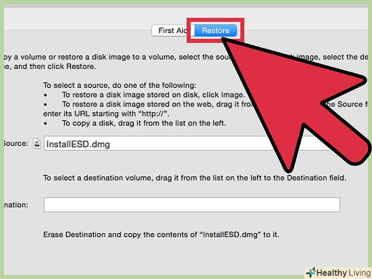 Клікніть на вкладці "відновлення" дискової утиліти.