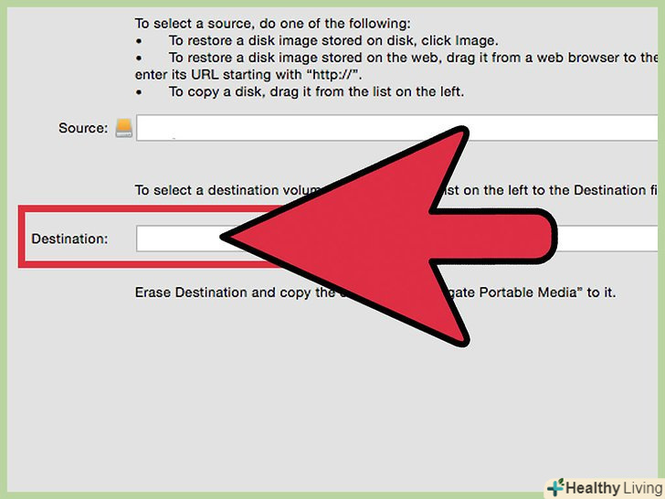 Перетягніть Новий розділ під ім'ям вашої флешки на лівій панелі в поле "Призначення".у більшості випадків Новий розділ називається " Untitled.”