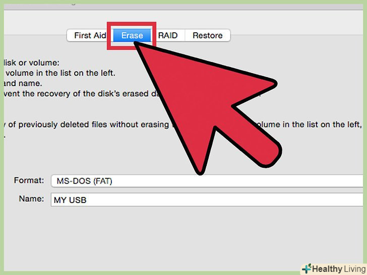Поверніться в дискову утиліту і в лівій панелі клікніть на імені вашої USB флешки.