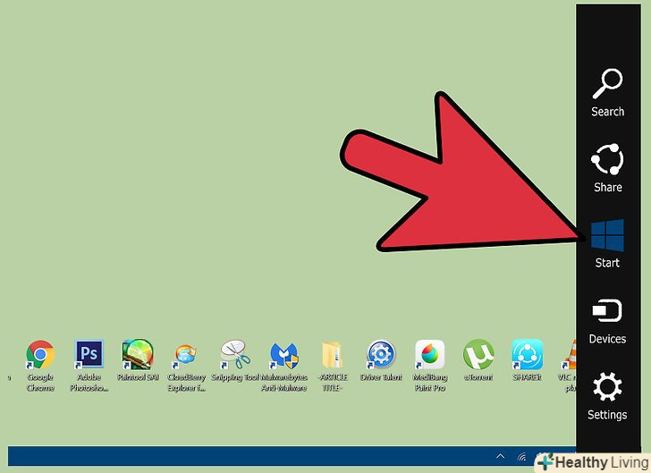 Проведіть по правому краю екрану вашого пристрою з ОС Windows 8.- Якщо ви використовуєте мишу, наведіть вказівник миші на лівий нижній кут екрана.