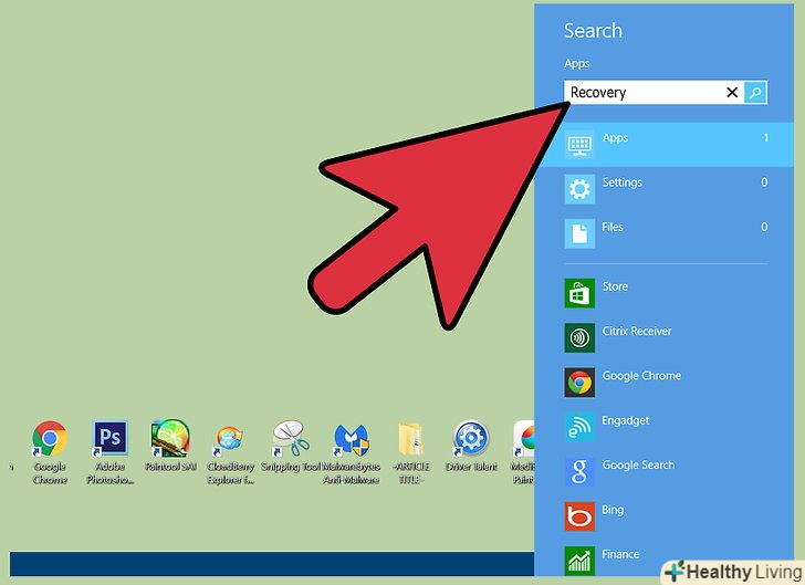У рядку пошуку наберіть "відновлення".на екрані з'явиться панель з результатами пошуку.- Клікніть " налаштування "і виберіть" Створити диск відновлення.”'
