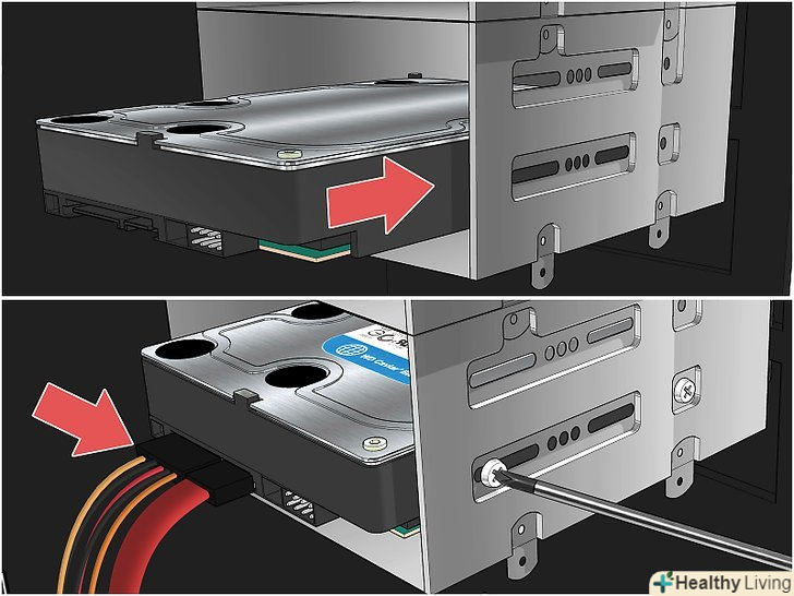 Вставте новий диск в той же відсік, де стояв старий.акуратно прикрутіть диск і підключіть інтерфейс обміну даними і кабель живлення.- Покладіть старий диск в безпечне місце на той випадок, якщо він вам ще знадобиться.