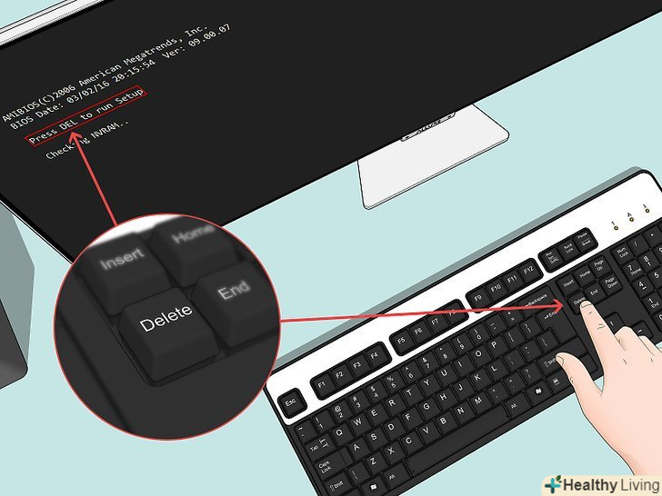 Вставте носій для відновлення системи в комп'ютер і включіть його. пропустіть цей крок, якщо ви клонували диск за допомогою програми для клонування. Якщо носій для відновлення знаходиться на DVD-диску, увімкніть комп'ютер, щоб витягти лоток для дисків. Якщо ж він знаходиться на USB-флеш-накопичувачі, просто вставте її в комп'ютер перед включенням. Якщо комп'ютер налаштований на завантаження з USB-накопичувача або DVD-диска, він автоматично завантажить інсталятор Windows.- Якщо комп'ютер не завантажується з носія для відновлення, вам доведеться внести певні зміни в BIOS. Спосіб входу в BIOS залежить від моделі материнської плати, але зазвичай, щоб увійти в меню завантаження, досить перезавантажити комп'ютер і відразу ж натиснутиF12, F10 або Del. Кнопка для входу повинна з'явитися під логотипом виробника. Якщо ви пропустите момент, вам доведеться перезавантажити комп'ютер і спробувати заново.