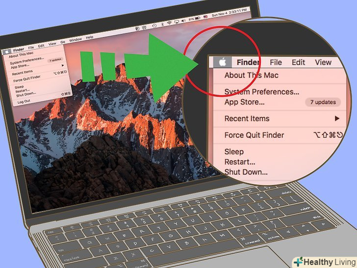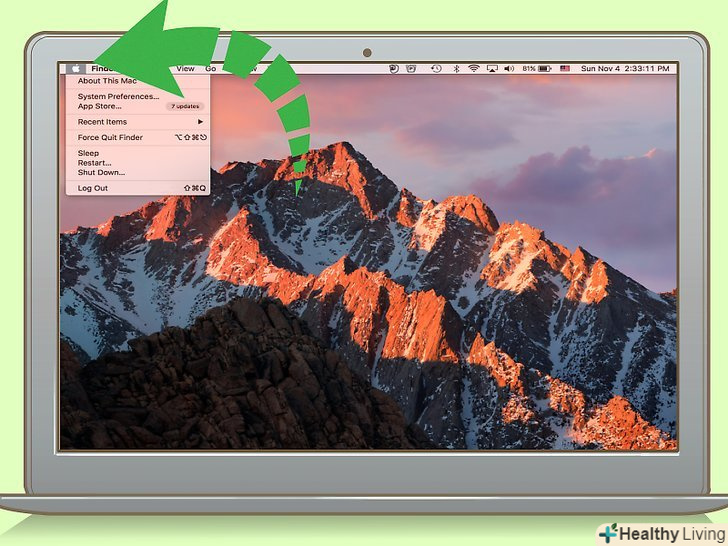 Відкрийте меню Apple.натисніть на логотип Apple у верхньому лівому куті екрана. Відкриється випадаюче меню.