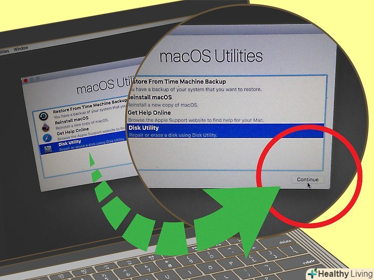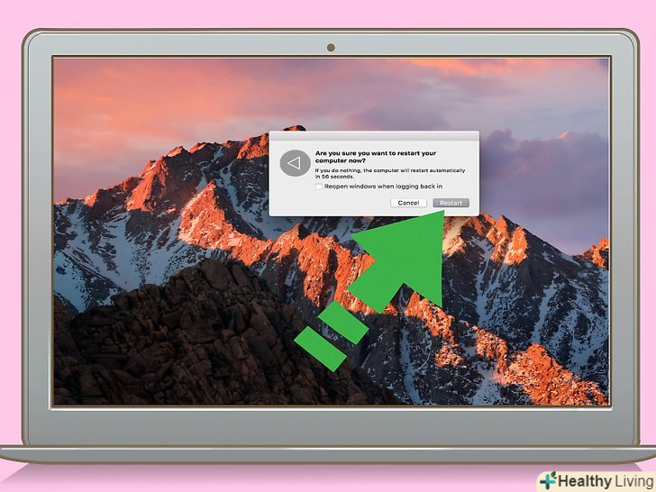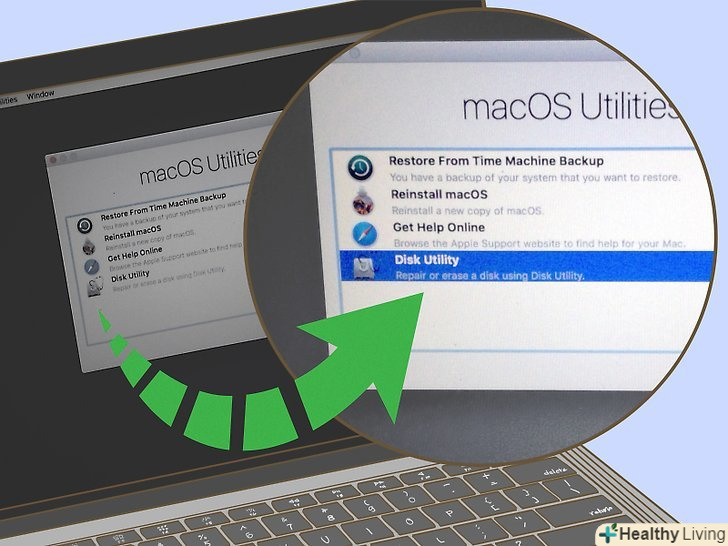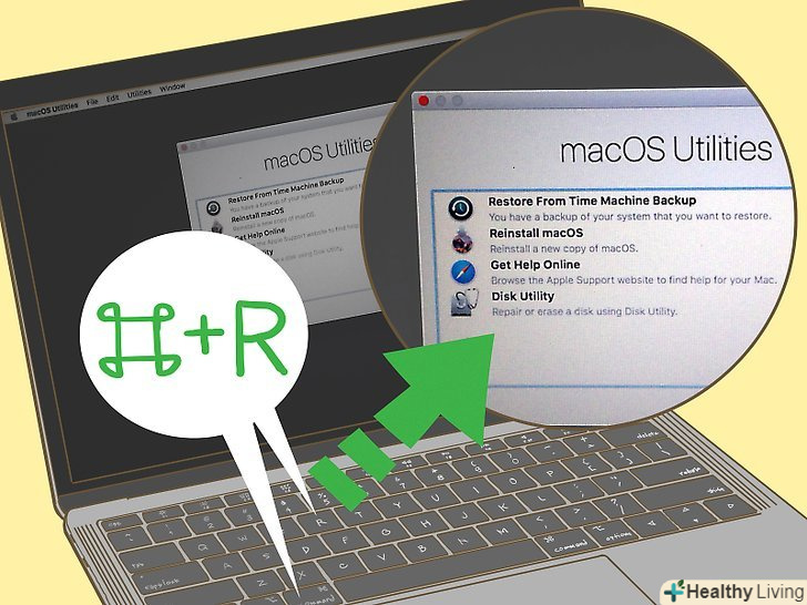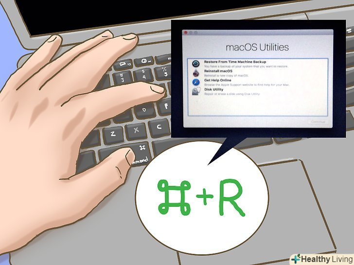 Запустіть комп'ютер у режимі відновлення. Як тільки ви натиснете «Перезавантажити», натисніть і утримуйте клавіші ⌘ Command і R до тих пір, поки не відкриється вікно «утиліти». Тепер відпустіть клавіші.