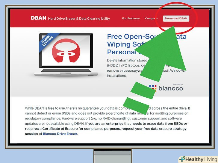 Завантажте образ програми "DBAN". перейдіть на сторінку https://dban.org / і натисніть " Download DBAN "(завантажити DBAN) у верхньому правому куті вікна. Почнеться завантаження ISO-файлу.- Можливо, вам доведеться підтвердити завантаження або вибрати папку для завантаження.