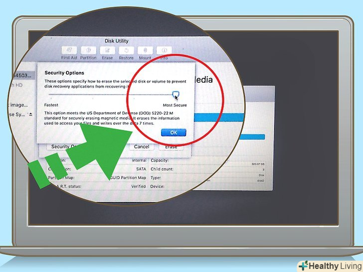 Перетягніть повзунок до параметра "найбезпечніший".у цьому випадку дані на внутрішньому жорсткому диску комп'ютера будуть перезаписані нулями сім разів, тобто відновити інформацію буде практично неможливо.
