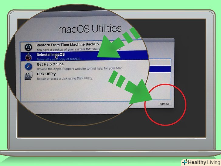 ВиберітьПеревстановити macOS і натисніть Продовжити.розпочнеться процес установки Mac OS X. коли процес завершиться, дотримуйтесь інструкцій на екрані, щоб налаштувати операційну систему.