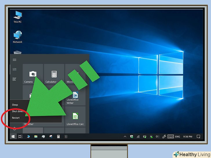 Перезавантажте комп'ютер. Відкрийте меню «Пуск», натисніть на значок "живлення"