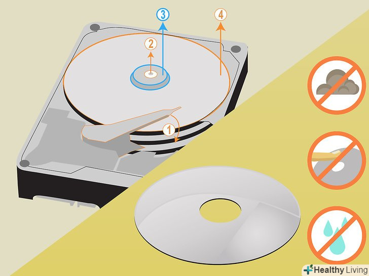 - Жорсткі диски монтуються в герметизованих чистих приміщеннях, без будь-якої пилу. Одне плямочка від стороннього матеріалу, випущене на пластину, знищить диск в більшості випадків. Якщо це трапиться, спробуйте використовувати баночку з повітрям і розбризкуйте його, але не витирайте і не використовуйте хімічні препарати.