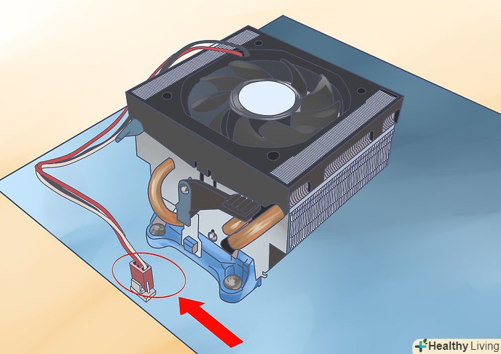 Підключіть кулер.підключіть живлення кулера до материнської плати (роз'єм кулера процесора), що дозволить комп'ютеру автоматично регулювати швидкість обертання кулера без зміни напруги.