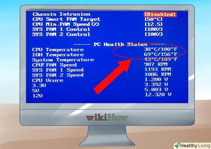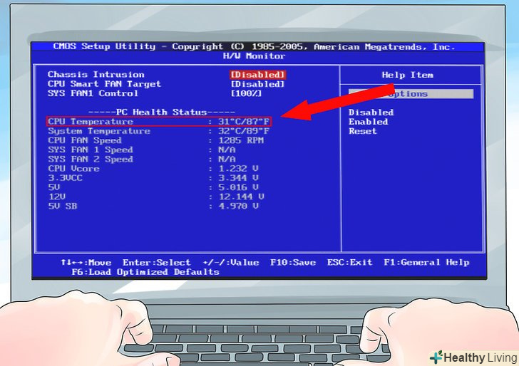Завантажте систему.переконайтеся, що кулер обертається. Увійдіть в BIOS, натиснувши клавішу F1 або Del під час завантаження системи. Переконайтеся, що температура в нормі: температура процесора повинна бути нижче 40 градусів Цельсія в режимі очікування; те ж саме для відеокарти (графічного процесора).