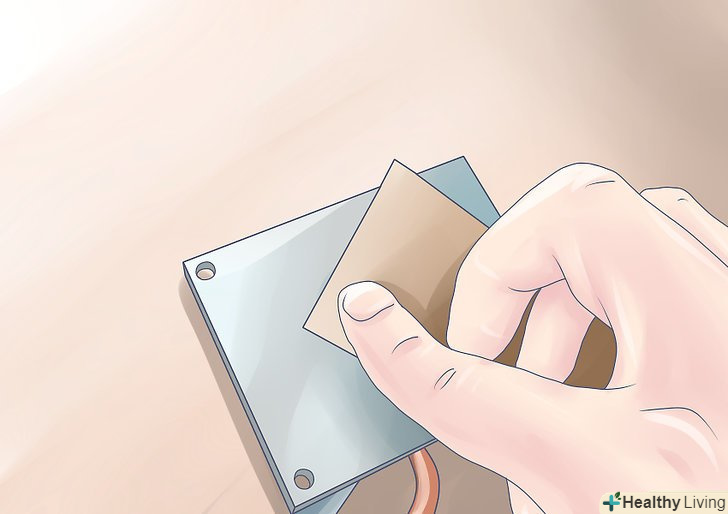 При необхідності відшліфуйте поверхні.в ідеалі, дві дотичні поверхні (процесора і радіатора) повинні бути абсолютно гладкими, що повністю усунуло б необхідність в термопасті. Однак це не так. Тому відшліфуйте підставу радіатора шкіркою, щоб надати йому більше гладкості. Але якщо ви не прагнете отримати максимальне охолодження, то цього можна не робити.- Термопаста призначена для заповнення нерівностей на поверхнях, що з'єднуються. Так як сучасні виробничі технології не можуть зробити поверхні без нерівностей, термопаста завжди буде необхідна.