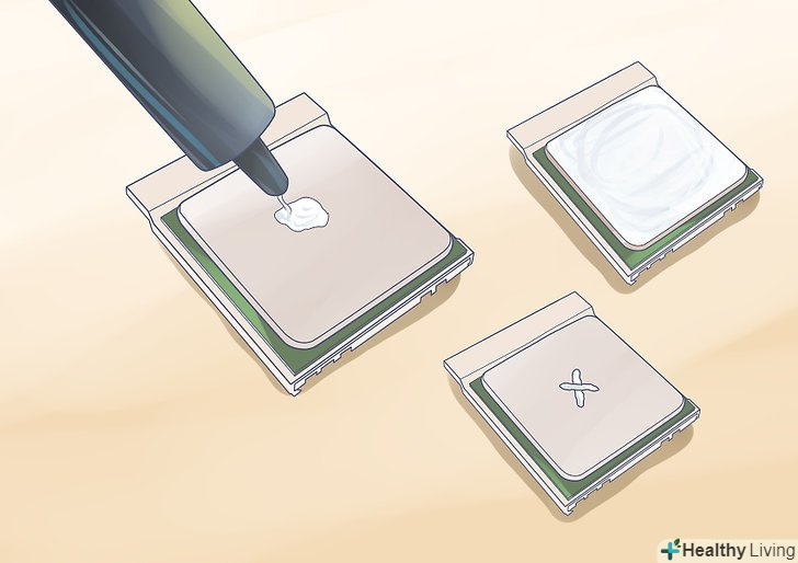 Виберіть термопасту.більшість термопаст містять силікон і оксид цинку, тоді як в більш дорогих термопастах є чудові провідники тепла, такі як срібло або кераміка. Перевага Срібної або керамічної термопасти в тому, що у вас буде більш ефективна теплопередача. Однак, проста термопаста задовольнить потреби більшості користувачів.- Якщо ви плануєте розганяти комп'ютер, купіть термопасту, що містить срібло, мідь і золото. Йдеться про найбільш теплопровідних металах, із застосуванням яких робиться термопаста.