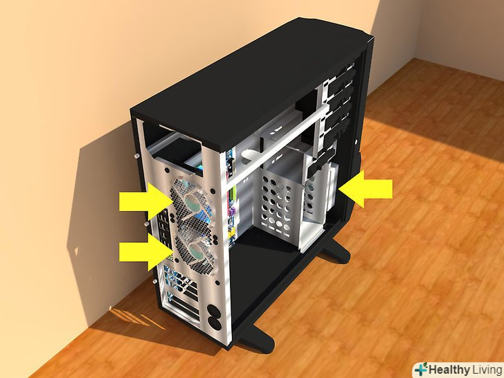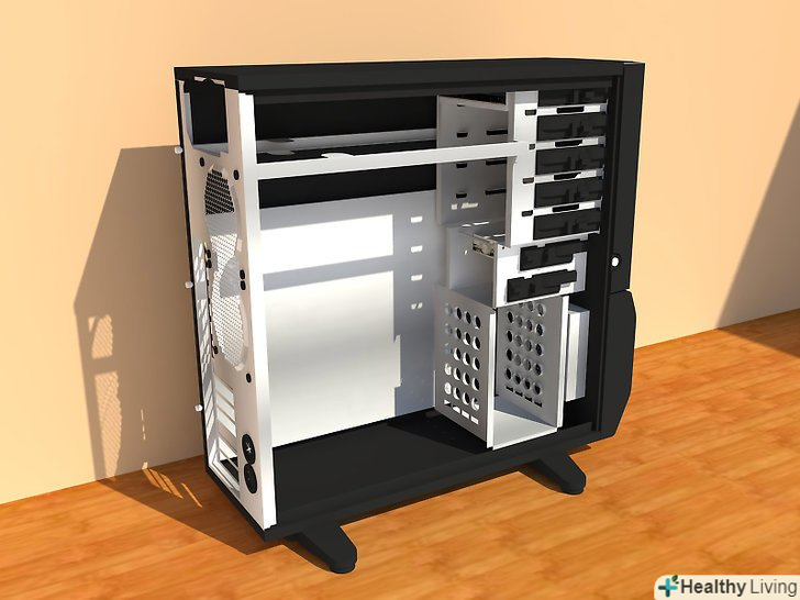 Підберіть корпус. [3] Корпус типу "tower" є оптимальним варіантом, оскільки він поміщається під стіл, дозволяє помістити комп'ютер подалі від ваших вух, легко оперувати знімними дисками і не займає занадто велику площу. Зверніть увагу на наявність наступних характеристик:- Великі вентиляційні отвори на передній панелі (часто отвори в декоративній кришці і перфорація в самому корпусі за ними), бажано — Отвори під вентилятор на передній панелі. Великий витяжний вентилятор на задній панелі не принесе особливої користі, якщо повітря не зможе вільно проходити через комп'ютер, перед тим як вийти назовні.