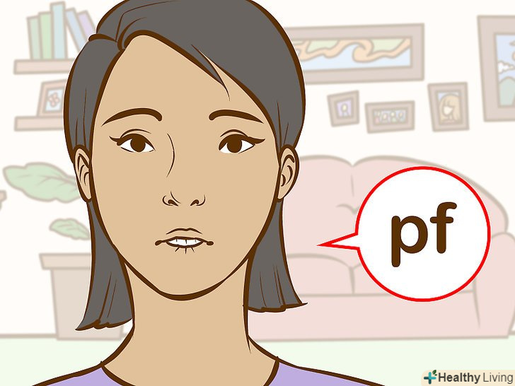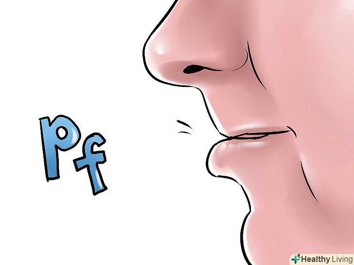 - Відразу після випуску повітря і звуку "п" напружте нижню губу навпроти нижніх зубів, щоб зробити звук "ффф".