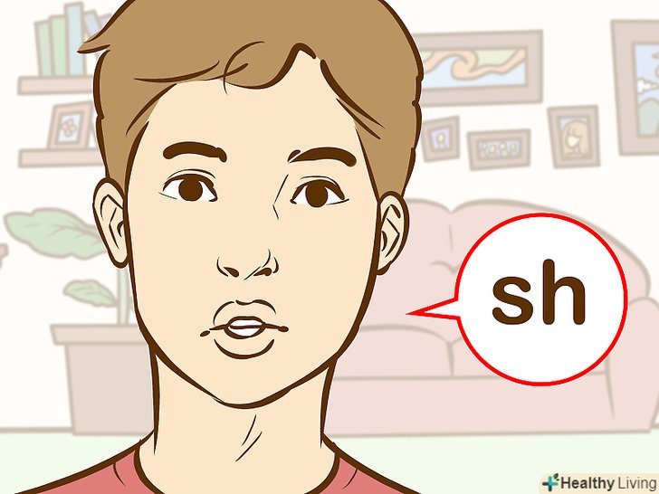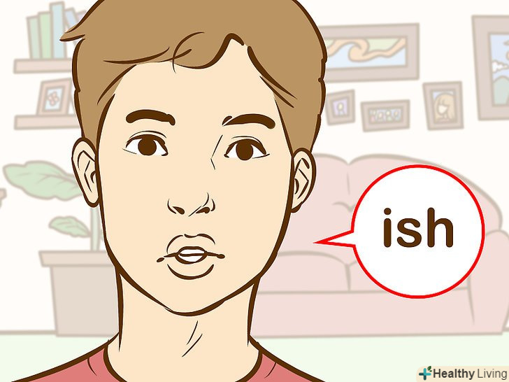 Далі спробуйте продублювати тарілки {т}.зробіть простий звук "TS", але ваші зуби повинні бути стиснуті або злегка стиснуті. Перемістіть кінчик язика вперед за передні зуби для звуку тарілок, і до традиційної т позиції для важкого звуку тарілок.- Зробіть видих довше, щоб вийшов відкритий звук тарілок.