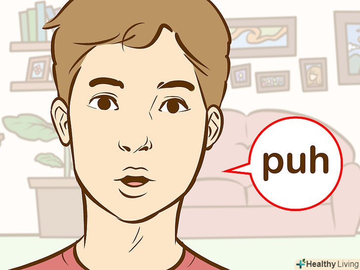 - Ще один спосіб наблизитися до цього-сказати"пух". Потім послабити звук" ух " так, щоб був акцент на першому звуці і так, щоб це звучало як невелика затягування. Спробуйте триматися твердо, щоб не дозволити вирватися будь-якого звуку з "ух", а також спробуйте не видавати ніякого хрипкого звуку або повітряного шуму.