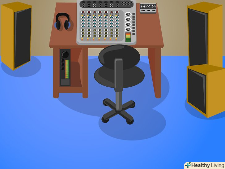 Виберіть місце для вашої звукової плати.це важливо, оскільки гучність звуку зменшується, коли ви знаходитесь ще далі від джерела звуку і так, що звук відбивається від поверхні в кімнаті. Вам потрібно бути в місці, де ви знаходитесь, досить далеко від динаміків, щоб у вас не звук не розносився безпосередньо на вашому обличчі всю ніч, але досить близько, щоб ви в кінцевому підсумку не включали мікшер занадто голосно, тому що не можете почути його в задній частині кімнати. Крім того, необхідно буде проаналізувати довжину ваших мікрофонних кабелів і розташування електричних розеток в кімнаті.