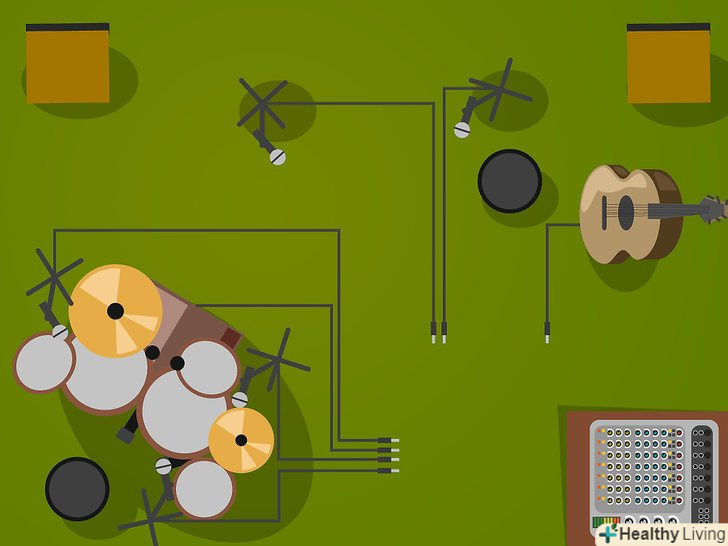 Створіть основну настройку.налаштуйте свої мікрофони і стійки в міру необхідності, разом з будь-яким DI() boxes, необхідні для інструментів для прямого підключення до системи PA (наприклад, акустичній гітарі, або клавіатурі).