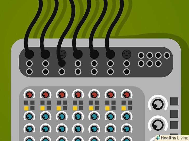 Закріпіть кабелем свої мікрофони. Підключіть мікрофонні кабелі до кожного мікрофона і DI-box, використовуючи свій список входів з кроку 7 в якості орієнтира, в нашому попередньому прикладі ви б підключили кабель від 'Input 1' на звуковій платі до DI-box для гітари 'Input 2' підключається до клавіатури DI і так далі. Примітка:. Багато звукові плати малого формату дозволяють підключати 1/4 " інструментальний кабель безпосередньо до мікшера без необхідності в DI-box . Цей роз'єм буде позначений як ' Line В"; не слід плутати з гніздо, позначеним 'Inst', який позначає 'Insert Point', не інструмент.