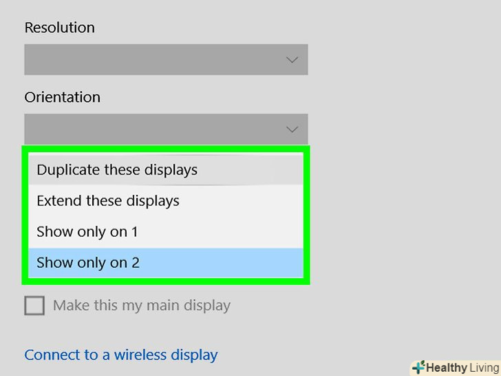 Виберіть потрібну опцію.у більшості випадків потрібно вибрати» розширити ці екрани", щоб робочий стіл розтягнувся на обидва монітори, тобто став більше. Також можна вибрати одну з наступних опцій:- Дублювати ці екрани: на другому моніторі відобразиться та ж картинка, що і на першому.