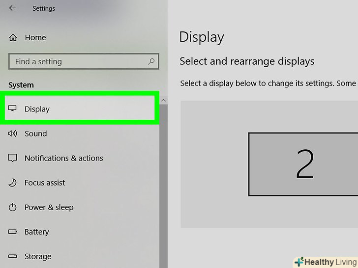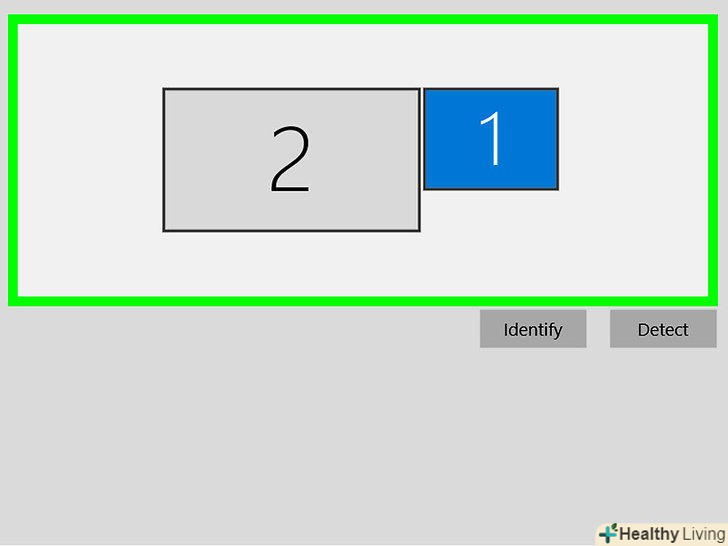 Підключіть другий монітор до комп'ютера.Підключіть один кінець відеокабелю (наприклад, HDMI) до відеороз'єму на комп'ютері, а інший кінець до відеороз'єму на другому моніторі.- Якщо Ви користуєтеся адаптером, підключіть кабель (або кабелі) до адаптера; також, можливо, адаптер спочатку доведеться підключити до джерела живлення.