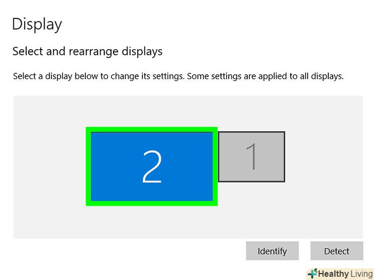 Розташуйте другий монітор.якщо ви хочете розтягнути робочий стіл на обидва монітори, поставте його праворуч від першого монітора.- Якщо ви дублюєте зображення на другий монітор, його можна поставити де завгодно.