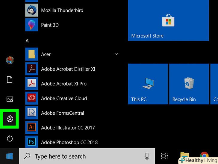Натисніть «Параметри». це значок у вигляді шестерінки в нижній лівій частині меню»Пуск".