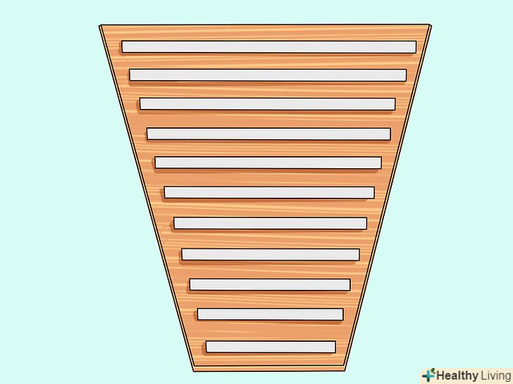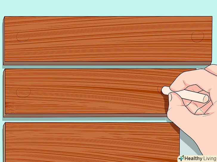 Відзначте на клавішах ті місця, якими вони будуть кріпитися до корпусу ксилофона.кожну клавішу необхідно прикріпити приблизно на 1/5 довжини від її кінця. Відзначте крейдою той кінець, який ви прикріпіть до корпусу, і відміряйте від нього приблизно 1/5 довжини клавіші.[4]- Виконайте це з усіма клавішами.