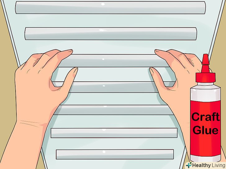 Розмістіть смужки на полиці.їх довжина повинна відповідати розмірам трубок в порядку убування. Відстань між сусідніми смужками має становити близько 2,5 сантиметра. Приклейте їх до дошки клеєм для дерева.- Зачекайте, поки клей для дерева висохне, перш ніж продовжувати далі. Зазвичай клей для дерева сохне близько 6-8 годин-точний час має бути вказано на упаковці клею.