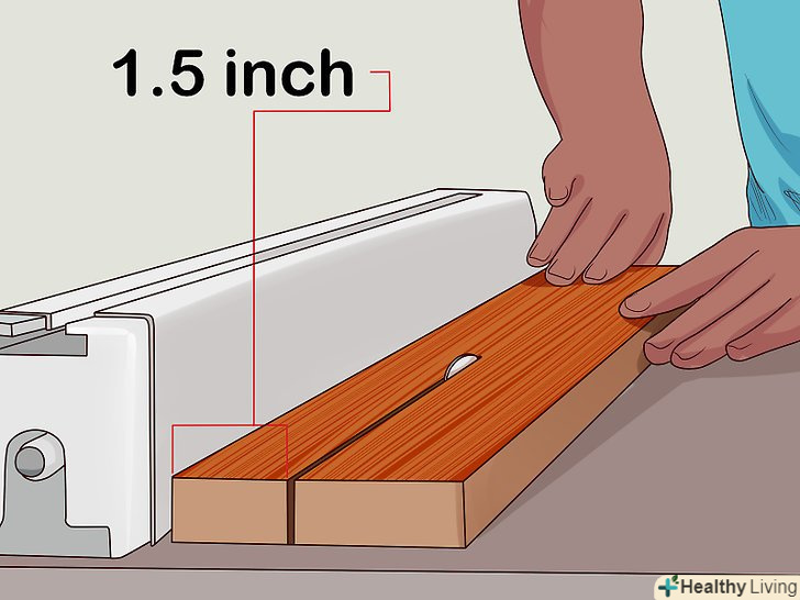 Поріжте дошки на 9 смуг шириною 3,8 сантиметра.одягніть захисні окуляри і беруші або навушники і за допомогою циркулярної пилки або іншого електричного інструменту поріжте деревину на смуги. Тримайте руки на відстані не менше 15 сантиметрів від відрізного кола, щоб уникнути травми. Клавіші для ксилофона повинні мати наступну довжину:[3]- 25,1 сантиметра: