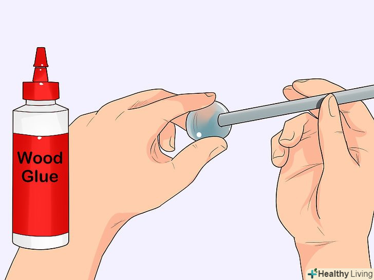 Приклейте палички до дерев'яних кульок.нанесіть на кінець палички трохи клею для дерева і вставте його в отвір в кульці. Зачекайте 6-8 годин, поки клей висохне (точний час має бути вказано на упаковці).- Не використовуйте ксилофонні палички, поки вони повністю не висохнуть.