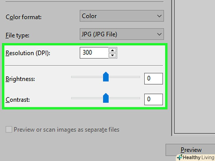Змініть інші параметри на сторінці.залежно від сканера на сторінці можуть відображатися інші параметри (наприклад, «дозвіл»), які можна змінити.