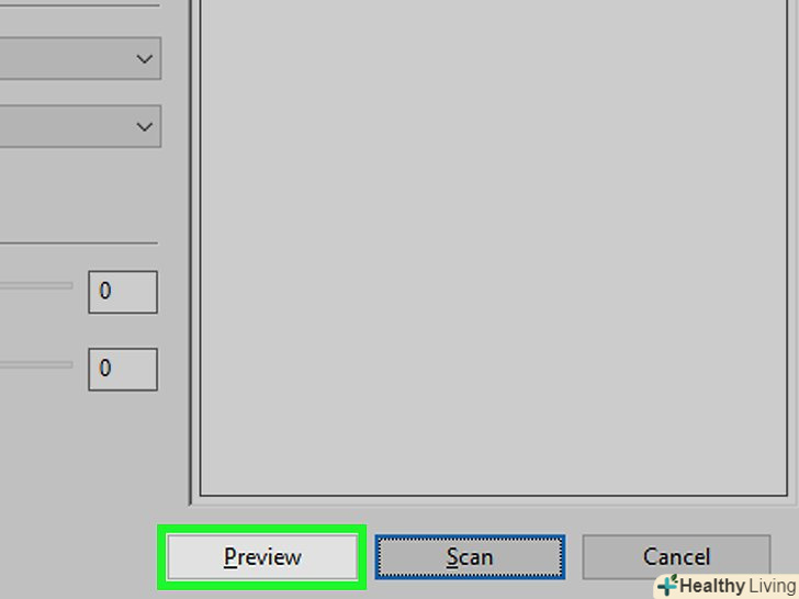 НатиснітьПопередній перегляд.ця кнопка знаходиться в нижній частині вікна. Відкриється вікно попереднього перегляду, в якому можна побачити, як буде виглядати відсканований документ.- Якщо вам не подобається, як виглядає документ у вікні попереднього перегляду, поправте документ у сканері, а потім знову натисніть "Попередній перегляд".