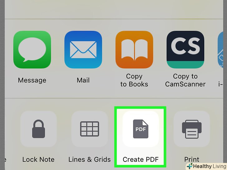 Прокрутіть вправо і натиснітьСтворити PDF.прокрутіть нижній, а не Верхній ряд опцій.