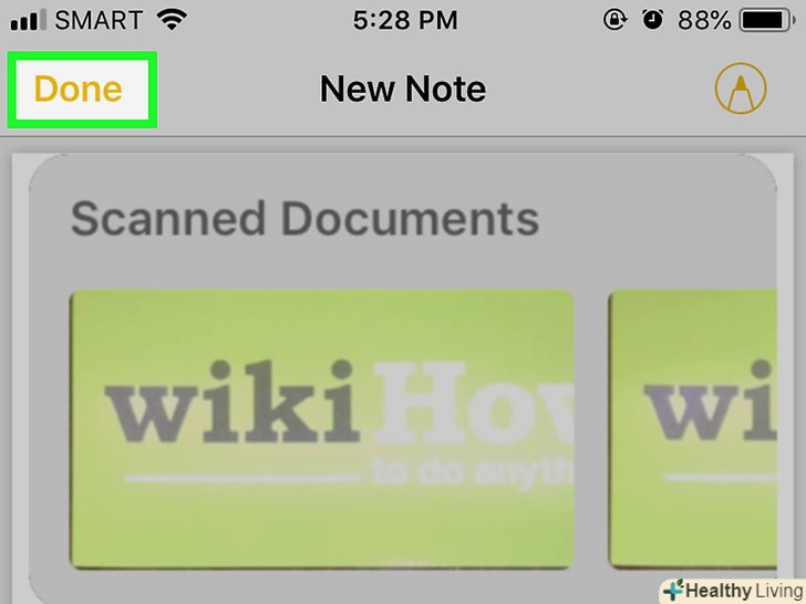 Клацніть по✓. цей значок знаходиться в нижньому правому куті екрану. Відсканований документ буде збережений.- Щоб обрізати відсканований документ, перетягніть одну з міток, які розташовані навколо відсканованого документа.