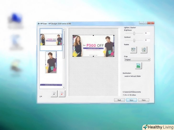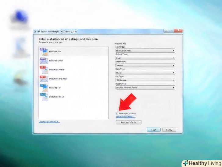 Виберіть попередній перегляд. Попередній перегляд дозволяє переглянути результат сканування з поточними настройками і внести зміни в разі необхідності. Використовуйте Попередній перегляд, щоб визначитися з форматом, орієнтацією і дозволом зображення, перш ніж почати сканування. "Орієнтація" може бути обрана портретна або альбомна, «дозвіл» визначає чіткість зображення.- Висока роздільна здатність зробить зображення більш чітким і детальним. Щоб підвищити різкість зображення, ставте більш високу роздільну здатність. Примітка: збільшення роздільної здатності призведе до збільшення розміру зображення, а також до істотного збільшення розміру файлу. Не виключено, що для відправки по електронній пошті зображення доведеться зменшити. Дозвіл вище 300 dpi зайве.