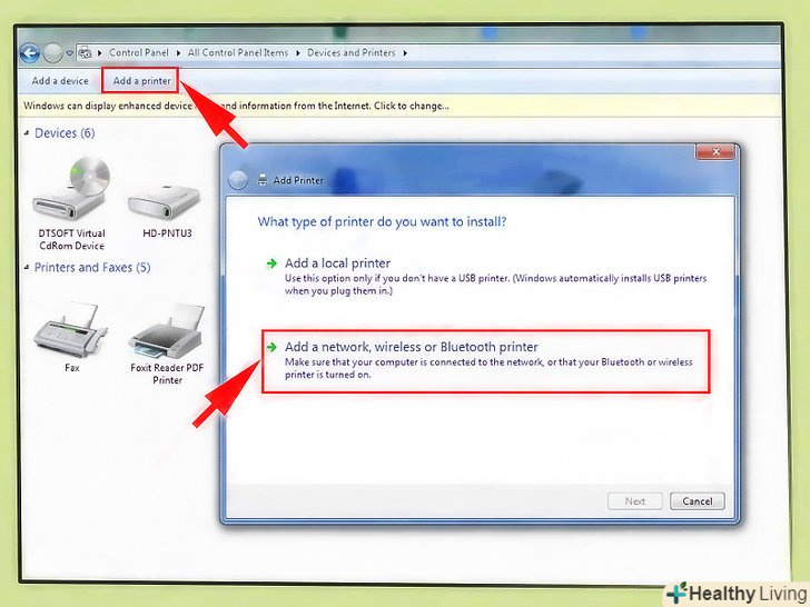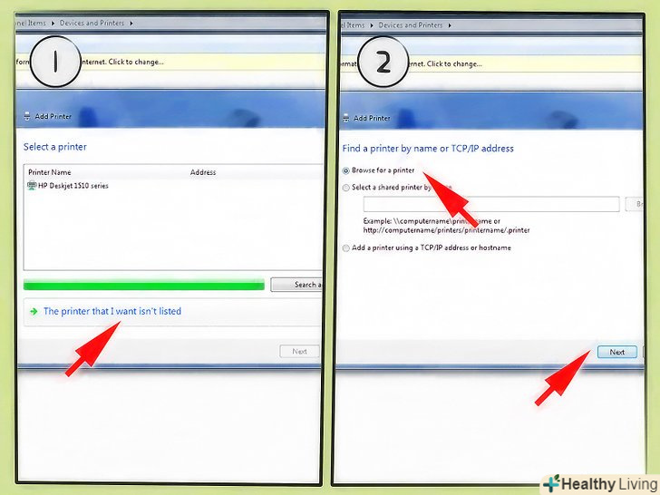 Виконайте ті ж дії, щоб дістатися до принтерів, встановлених на іншому комп'ютері.клацніть правою кнопкою миші опцію " Add printer "(Додати принтер) і виберіть "Network printer" (мережевий принтер). Дозвольте ОС Windows виконувати пошук принтерів в мережі. Якщо принтер не знайдено автоматично, виберіть "the printer I want is not listed" (потрібного принтера немає в списку). Виберіть опцію " Browse for printers "(огляд принтерів) і знайдіть комп'ютер, який підключений до USB-принтера. Клацніть значок"+", щоб розгорнути його, а потім виберіть принтер.