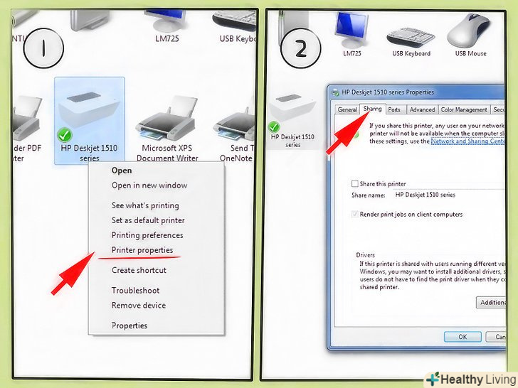 Натисніть кнопку Start в ОС Windows і послідовно перейдіть в Settings = = gt; Control panel ==gt; Printers (Налаштування ==gt;Панель управління ==gt; принтери).клацніть правою кнопкою миші на принтері для спільного використання.