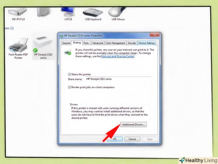 Виберіть " Additional drivers "(додаткові драйвери), якщо є інші комп'ютери в мережі з більш старими операційними системами Windows.дотримуйтесь інструкцій, щоб встановити драйвери для цих комп'ютерів. Це дозволить заощадити час, так як драйвери не повинні бути завантажені і встановлені окремо на інших комп'ютерах.
