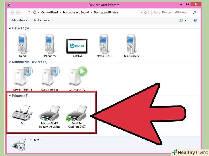 - Виберіть "пристрої та принтери «або натисніть»Перегляд пристроїв і принтерів". Відкриється список всіх підключених пристроїв.