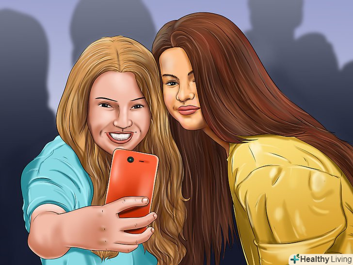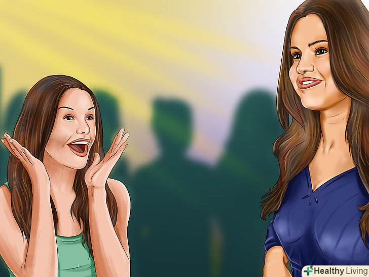 Висловлюйте захоплення.показуючи свою радість, коли побачите її, Ви зможете виділитися з натовпу. Якщо вам пощастить зустрітися з нею тет-а-тет, ваші слова, тон і мова тіла повинні демонструвати ваш ентузіазм і залишити максимально гарне враження.- Більшості знаменитостей дуже приємно чути, що ви любите їх творчість. Можете завантажити щось на кшталт: "Мені дуже сподобався ваш новий альбом. Моя улюблена пісня ______", або " ви відмінно зіграли у фільмі______".[7]