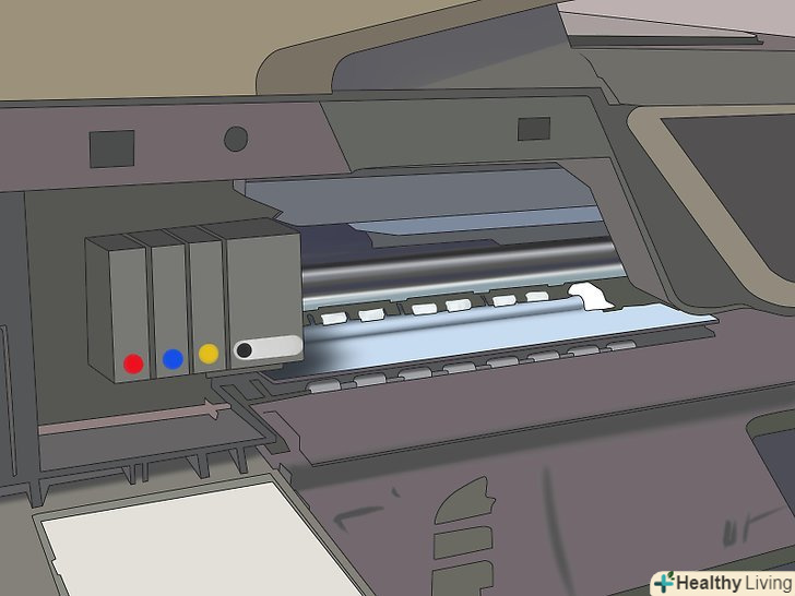 Обережно втисніть картридж з чорнилом в слот, поки не почуєте клацання.колірна точка на картриджі повинна відповідати колірній точці, зазначеної на слоті картриджа.