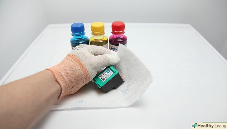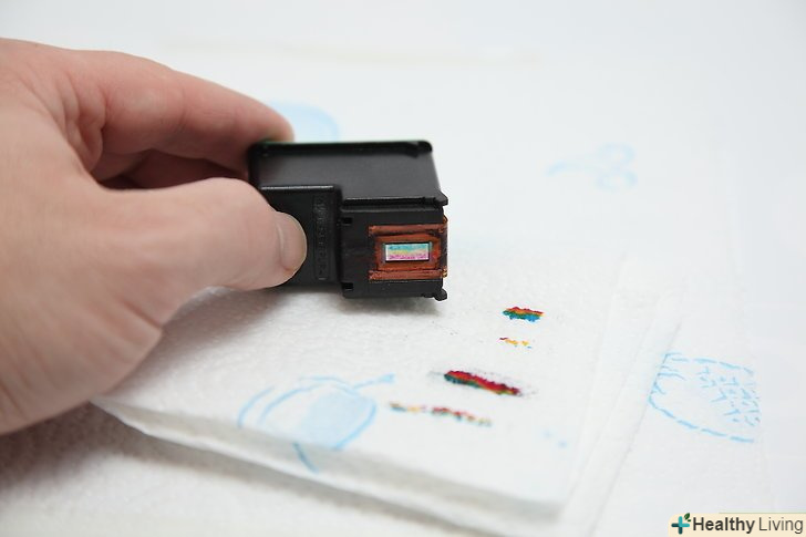 Обережно прикладіть контакти картриджа до паперового рушника, ви побачите сліди вилилися чорнила.
