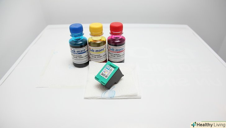 Крім чорного існують ще три кольори чорнила: маджента, блакитний і жовтий. Дотримуйтесь інструкції з набору, щоб визначити в який отвір якого кольору чорнило повинні надходити або занурте в кожне з отворів зубочистку, щоб визначити де який колір, так як позначки на картриджах можуть бути навмисно переплутані.
