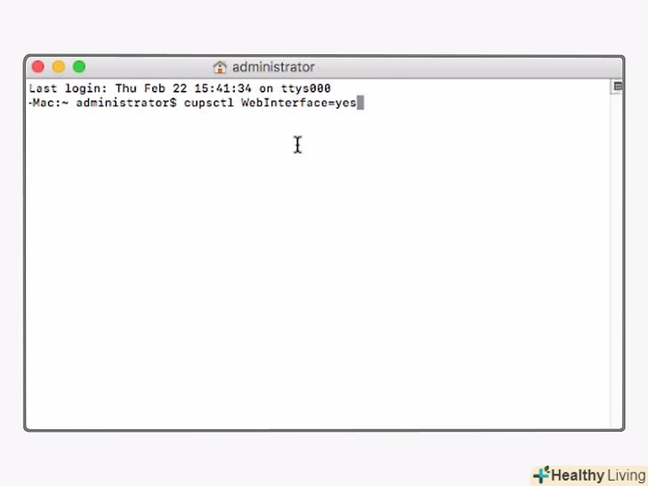 Запустіть команду налаштувань принтера. Введіть cupsctl WebInterface=yes натисніть ⏎ Return. Дочекайтеся закінчення виконання команди.